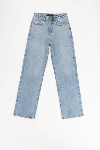 شلوار نیم بگ جین رنگ آبی خام شور از برند رویال جین و پارچه جک پات